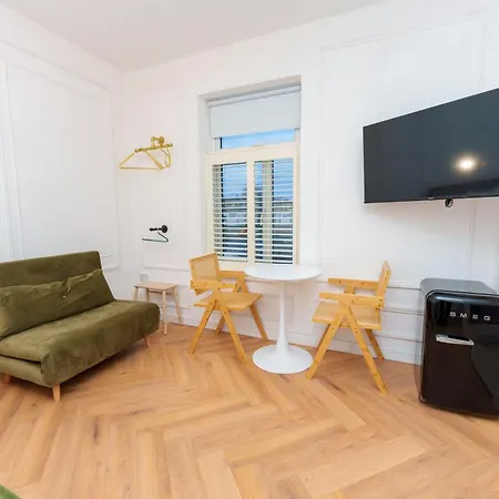 O apartamento apresenta varanda e local de descanso completos com o ferro e tábua de passar, ferro de passar, controle de temperatura, bem como TV de tela plana com canais via satélite. Aqui você encontrará confortos como banheiro separado e chuveiro.